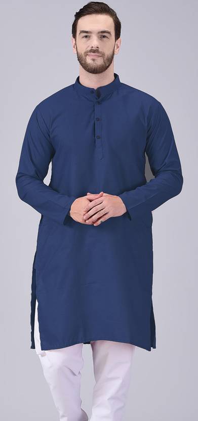 AD & AV Men Solid Straight Kurta (Dark Blue)