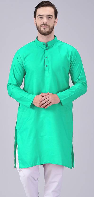 AD & AV Men Solid Straight Kurta (Green)