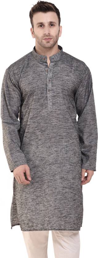 AD & AV Men Solid Cotton Linen Straight Kurta (Grey)