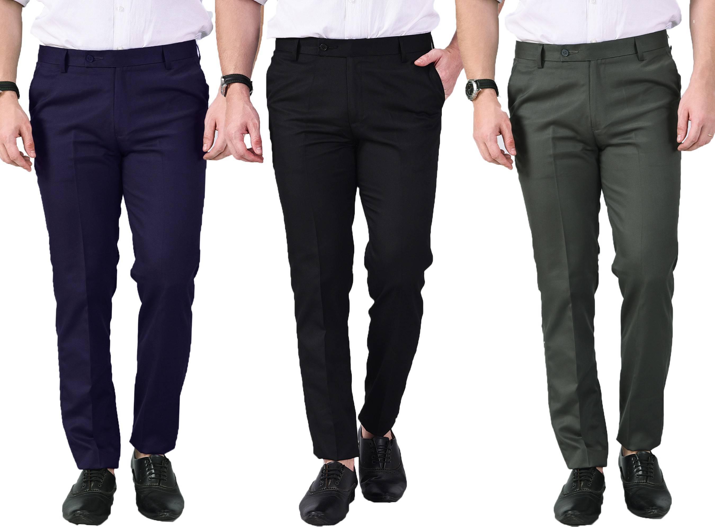 AD & AV MENS FORMAL TROUSER PACK OF 3 TROUSER events and workplaces demand a formal dress code. AD & AV brings to you this formal trouser with a regular fit that can be worn to such places. They are meticulously stitched out of cotton mix material and feel smooth against your skin. The side pockets allow you to comfortably place your palms inside them along with storing wallets and handkerchiefs. The mid-rise waist provides a modern look and the belt loops allow a tighter fit when a belt is slipped through the loops. The button and zip closure is easy to use. You can try on these menâÂÂs formal trousers to match your professionalism. TROUSER Eventss and workplaces demand AD & AV brings to you this casual trouser with a regular fit that can be worn to such places. They are meticulously stitched out of cotton lycra material and feel smooth against your skin. The side pockets allow you to comfortably place your palms inside them along with storing wallets and handkerchiefs. The mid-rise waist provides a modern look and the belt loops allow a tighter fit when a belt is slipped through the loops. The button and zip closure is easy to use. You can try on this men’s casal trousers to match your professionalism.