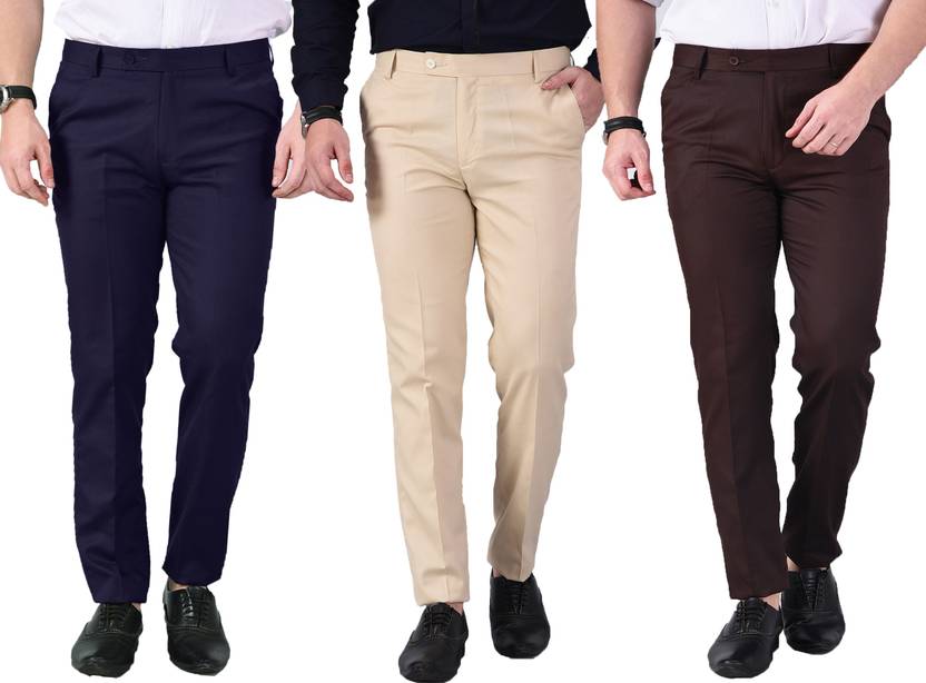 AD & AV MENS FORMAL TROUSER PACK OF 3 TROUSER events and workplaces demand a formal dress code. AD & AV brings to you this formal trouser with a regular fit that can be worn to such places. They are meticulously stitched out of cotton mix material and feel smooth against your skin. The side pockets allow you to comfortably place your palms inside them along with storing wallets and handkerchiefs. The mid-rise waist provides a modern look and the belt loops allow a tighter fit when a belt is slipped through the loops. The button and zip closure is easy to use. You can try on these menâÂÂs formal trousers to match your professionalism. TROUSER Eventss and workplaces demand AD & AV brings to you this casual trouser with a regular fit that can be worn to such places. They are meticulously stitched out of cotton lycra material and feel smooth against your skin. The side pockets allow you to comfortably place your palms inside them along with storing wallets and handkerchiefs. The mid-rise waist provides a modern look and the belt loops allow a tighter fit when a belt is slipped through the loops. The button and zip closure is easy to use. You can try on this men’s casal trousers to match your professionalism.