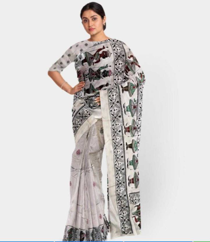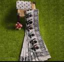 AD COLLECTIONS Digital Print Murshidabad Art Silk Saree (White)