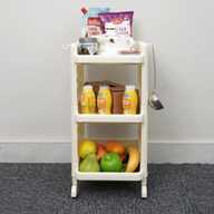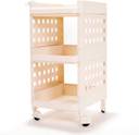 Durable quality 3 tier storage shelf basket with wheels. The plastic material quality is good that seems to last for years. The racks can be used as an organizer to keep small items at the reach instantly. I have placed this in my home office and it serves my purpose perfectly.