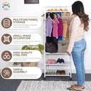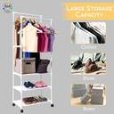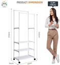 • (STYLISH DESIGN WITH LARGE STORING CAPACITY): ADA clothing rack with a trendy industrial design seamlessly blends into your home decor and enhances the aesthetic appeal of the spaces whether it’s a bedroom, living room, hallway, entryway, or bathroom. The sturdy & durable pole of the clothes hanger stand has a smooth finish with an anti-rust coating. You can hang multiple clothes, such as coats, jackets, shirts, or long dresses like sarees, kurtas, and long skirts. || • (FITS PERFECTLY EVERYWHERE): This is not just a cloth stand for bedroom, the minimalist design of this garment rack for clothes allows it to fit perfectly by the entryway, in your living room, dressing room and even in small spaces like bathroom. Coated with anti-rust paint, this corrosion free shirt hanger stand is also ideal as a laundry organizer for hanging clothes and keeping your bathroom accessories and items on the bottom shelves enabling you keep your laundry organized.|| • (HEAVY-DUTY METAL BUILD): This garment rack is built with heavy duty metal which makes it super sturdy and easily withstands the weight of your multiple clothes and accessories items whether it is your heavy winter coats, jackets, long dresses, suits or shoes and boxes on the bottom shelves.|| • (EASY TO MOVE): The ADA clothes hanger stand for bedroom is designed with four strong, swift and easily movable wheels which make it move swiftly from one room to another and keeps you worry-free. || • (EASY TO ASSEMBLE): Enjoy a hassle-free assembly experience with the ADA alna for clothes, featuring clear instructions and all the hardware required for effortless setup. || • (ABOUT US): We as a team always strive to present you the finest home decor articles available across the global market. The metal quality and finishing of ADA product is always premium and passes through 3 levels of quality check. Addition to our large collection of almost 500 articles does not stop here as there is continuous quest for innovative and more refined article. || • (AFTER-SALES SERVICE): If there is any quality problem with our metal cloth hanger stand, please feel free to contact us, we will get back to you within 12 hours, we will provide a replacement, quick response to any problematic product issues. (Contact: "Account Services" "Order History" "Contact Seller")