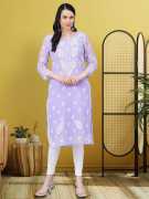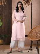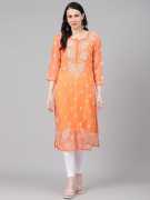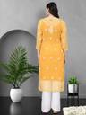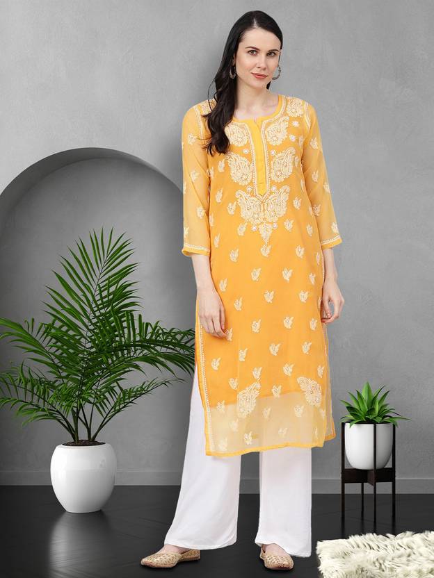 ADA Women Chikan Embroidery, Embroidered Straight Kurta (Yellow)