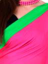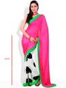 A designer inspired saree made in silk georgette, this one is made for casual occasions. Large polka dots adorn the skirt while a contrast front and pallugives a burst of colour that is further enhanced by a coloured border. Wear this with flats or wedges and a statement necklace.