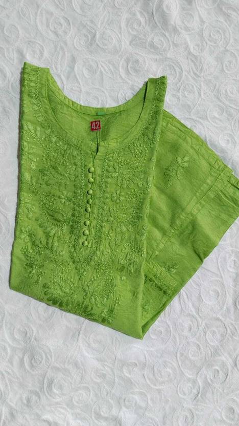 Latest Lucknowi Chikan Chanderi Silk Kurti Febric With hand work And Full Diable Adab Chikan Hand Embroidered Lucknowi Chikankari Chanderi Kurta Kurti for Womens Dyed Chanderi Cotton Chikankari Kurta for Women | Hand Embroidered Lucknowi Chikankari Kurti for Women length 30
