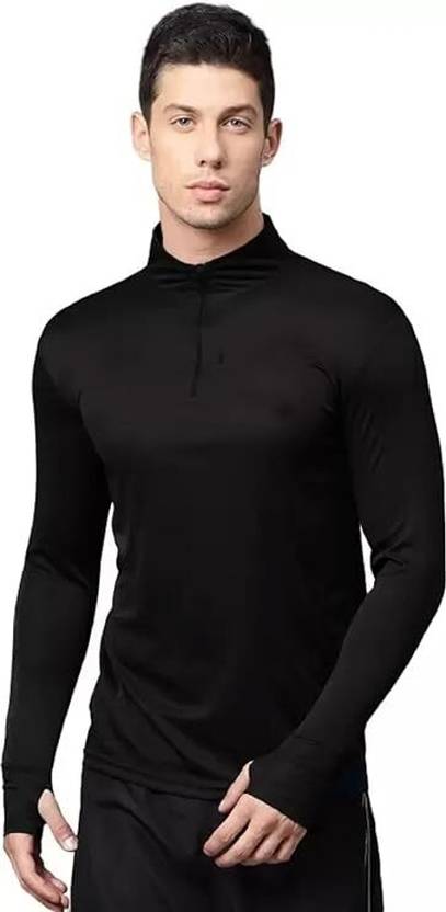 Adabsha Solid Men Zip Neck Black T-Shirt