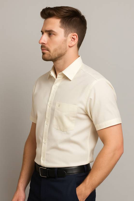 Men Regular Fit Solid Spread Collar Formal Shirt