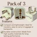 Other Power Features | - Universal Compatibility: Travel Adapter is specially designed for who are travelling to United Kingdom, UAE, Singapore, Hong Kong, Dubai, Ireland, Wales, Scotland and Iraq, Ireland, Kenya, Macau, Malaysia, Oman etc., Versatile Functionality: Compatible with a wide range of electronic devices including smartphones, laptops, cameras and more, this adapter allows you to power up wherever you are. Whether you're making memories in England, Dubai, Singapore or doing business in Iraq, rest assured that your devices will always be charged., Easy to Use: With its simple plug-and-play design, using this adapter is effortless. Just plug in your device, and you're ready to go. No need for complicated setups or adapters with multiple pieces—this all-in-one solution makes powering up a breeze., Durable Construction: Crafted from high-quality materials, this adapter is built to withstand the rigors of travel. Internal metal interfaces provide better conductivity, Provides proper grip to loose plugs.