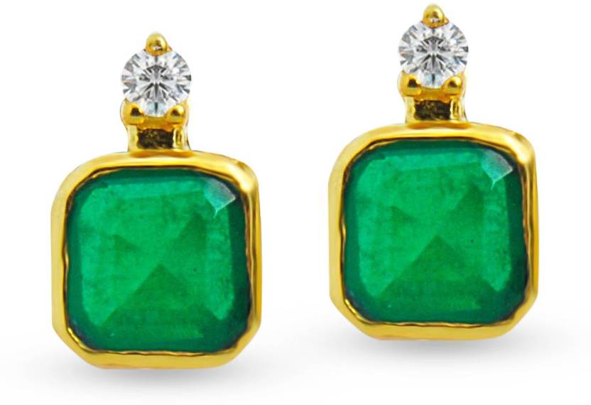 Green Asscher Bezel Stud Earrings