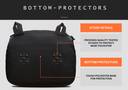 The bottom of the rucksack is equipped with two rubber pads that enhance stability and protect against wear and tear, allowing you to place it on various surfaces without concern. For added convenience, a tough handle on top provides an easy carrying option, making it simple to grab and go.