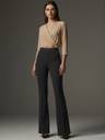 This is an ankle length pant with front seam detail and an elastic waistband. ADDYVERO present slim fitting throughout. Details : Ankle length, Elastic at waist, Front seam detail, High rise pant, Slim fitting, Straight leg, Stretchy fabric, Unlined. Model is wearing Small Size and having Height - 5'8", Bust - 34", Wais t: 24", Hip : 35"