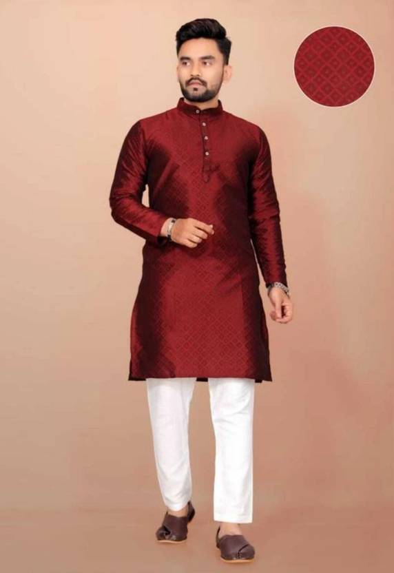 Krudha Men Embroidered Straight Kurta (Maroon)