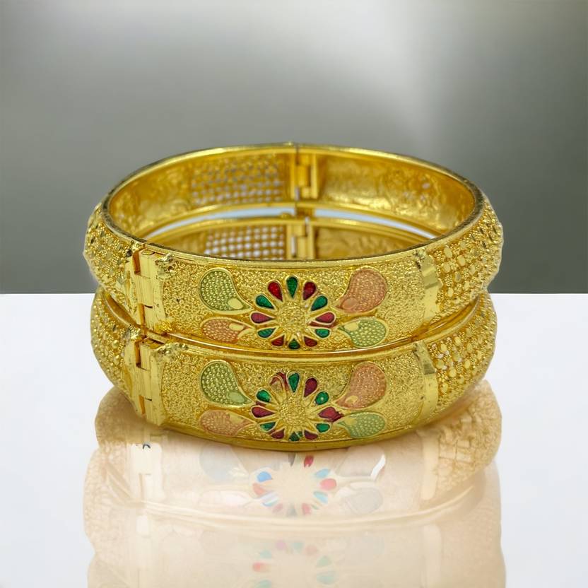 ADF- Latest One Gram Gold Plated Set of 2 Traditional Broad and GirlsScrew Bangles for Women