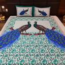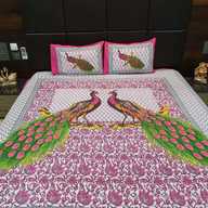 ADHARVE TRADING Cotton Double Flat 144 TC Jaipuri Prints Bedsheet (Pack of 1, Blue)