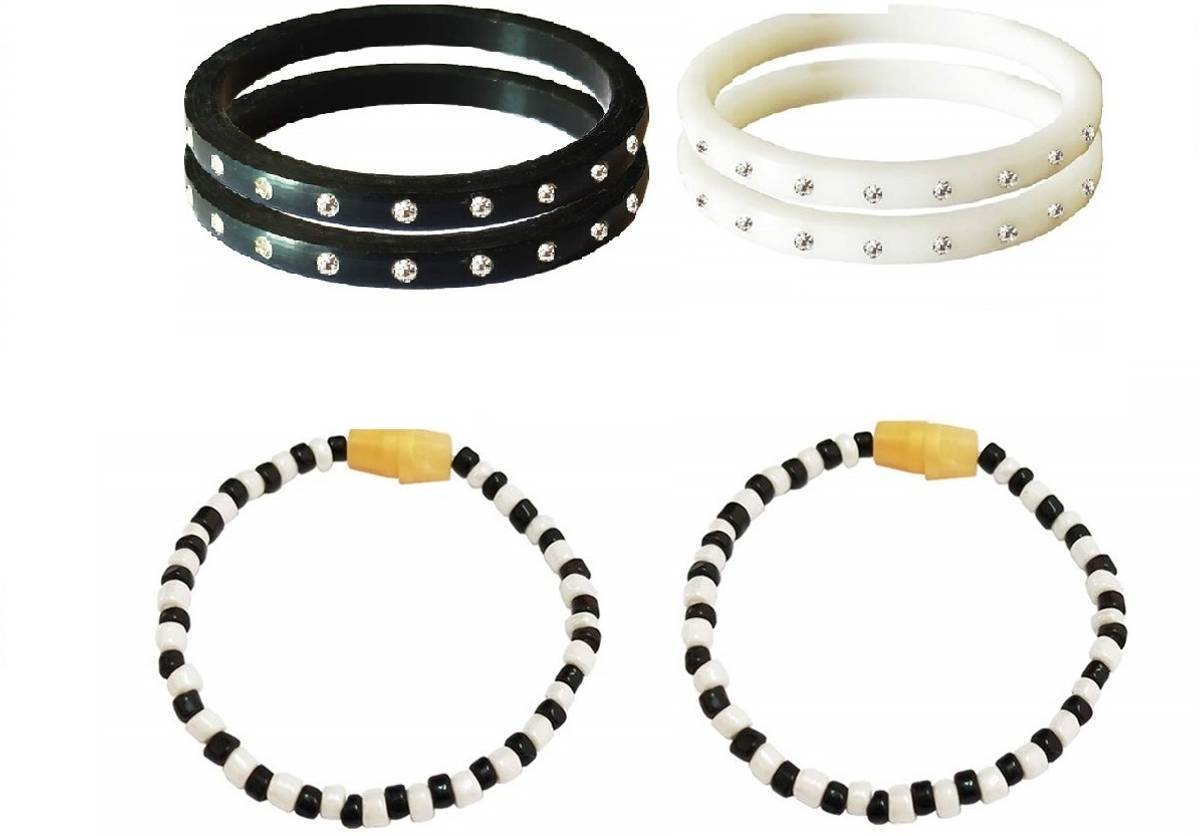 black n white beads thread bracelets Nazar kada Bracelets with black n white diamond Bangals Nazariya for New Born Baby boy,Girl Kids (0-9 months)