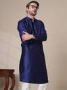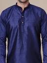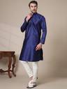 ADHIRAJAN Men Solid Cotton Silk Straight Kurta  (Dark Blue)