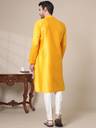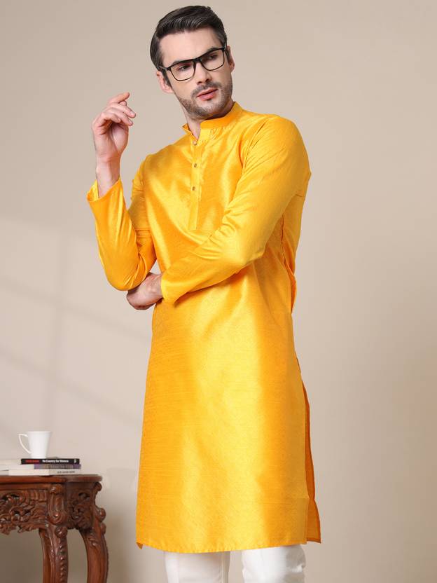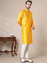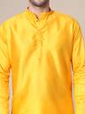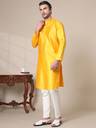 ADHIRAJAN Men Solid Cotton Silk Straight Kurta (Yellow)