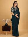 Solid/Plain Bollywood Georgette Saree (Dark Green)