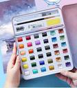 ADICHAI 36 Colors Solid Watercolor Paint Set - Absorbent Sponge And Water Brush