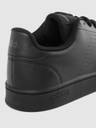 A court look emerges on the streets. These shoes have a sleek leather-like upper punctuated with perforated 3-Stripes. The low-profile shape rides on a smooth rubber cupsole.