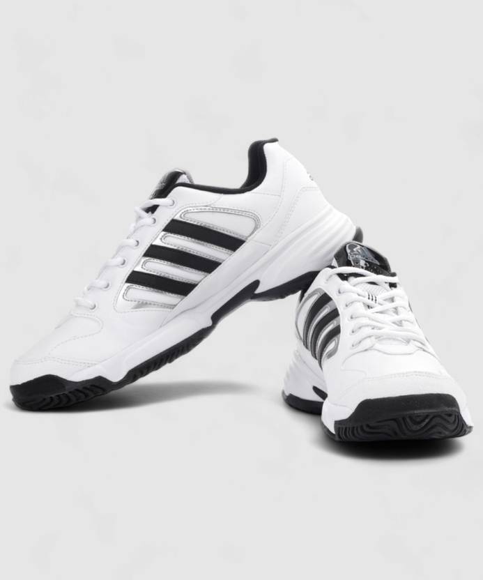 Get ready to serve the best game of your life with this pair of Ambition Swift Tennis shoes from Adidas. Classy in its embodiment with a black and white coating and a unique panel and stitch design to boot; it is just as efficient with the textured sole. Pair it with white tennis shorts from Adidas.
