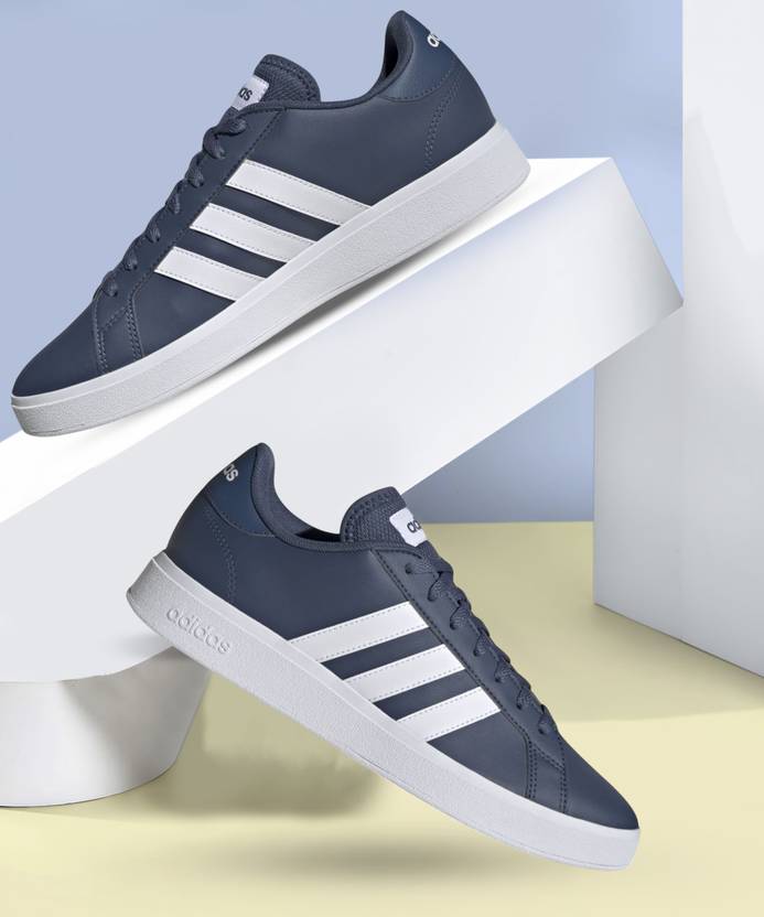 It's time to build — or fill in the gaps — in your retro sneaker collection. Let's start with these Grand Court shoes. The designers have revisited every element, adding a sturdy cupsole that offers grip in the wettest weather. Of course, these shoes stay true to their adidas roots too. The smooth, synthetic leather upper lets everyone know you're Team 3-Stripes.