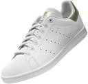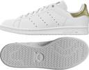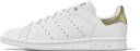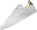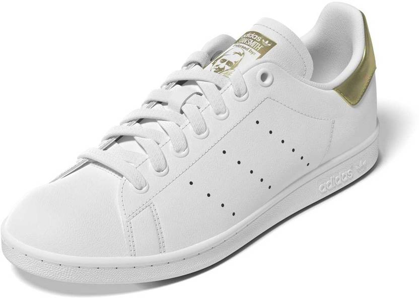 The chic minimalism of the Stan Smith invites creative touches. These shoes show off a metallic heel tab to add some glam to the classic look. The smooth leather upper, perforated 3-Stripes and Stan Smith's portrait on the tongue label add Stan Smith signature style.