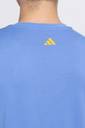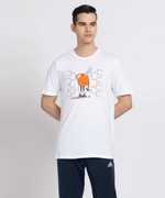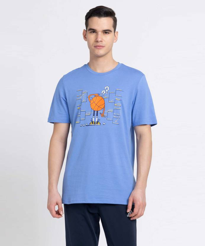 This adidas printed tshirt having crew neck with ribbed collar, back heat transfer with thread to and thread underneath, print color at centre front.