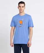 Men Printed Round Neck Pure Cotton Blue T-Shirt
