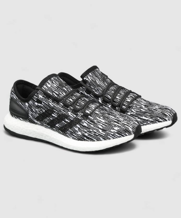 With a stripped-downsock-like fit and energized cushioningthe Pureboost is ready for training runs on city streets. Featuring a light and airy knit upperthese men's running shoes are built for a naturalnear-bare feel against your foot. An attached tongue and molded heel counter provide adaptive supportwhile a Boost midsole powers every step with energy-returning push-off and touchdown. A flexible Stretchweb outsole rounds out the minimalist look.