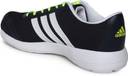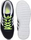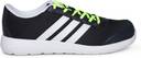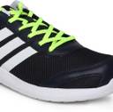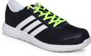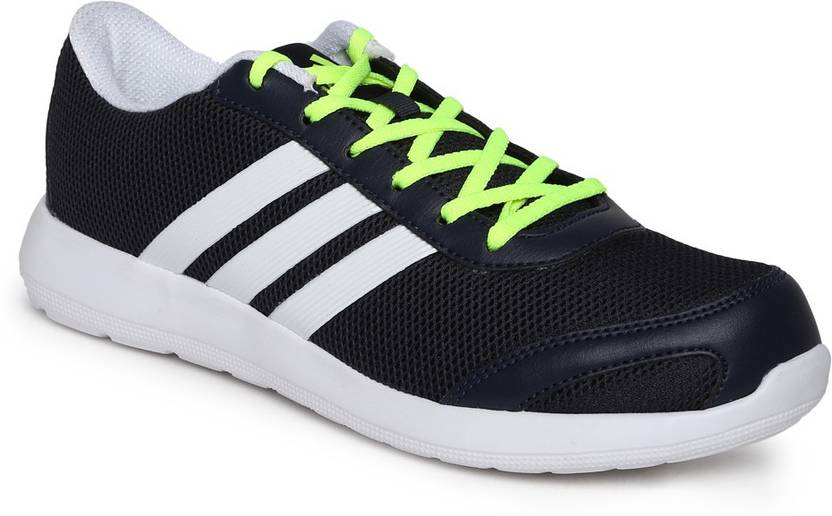 A pair of round-toed navy running shoes with fluorescent green and white accents, has central lace-ups and low-top styling. Nylon mesh and PU upper with overlays and stitched detail, has Adidas patent tristripes on both sides of the midfoot region and branding on the heel collar. Padded, mesh tongue and inner, branding on the tongue. Contrast and cushioned footbed with branding. Contrast EVA outsole that extends up to the forefoot region, has branding. Warranty: 3 months from the date of purchase against manufacturing defects only. Bring an enriching dimension in your shoe collection with this pair of stylish and comfortable running shoes from Adidas. Team it up with a tee and a pair of shorts for an ideal look..