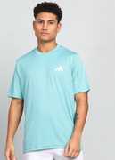 ADIDAS Solid Men Round Neck Blue T-Shirt