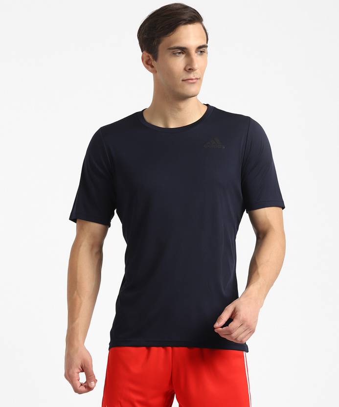 ADIDAS Solid Men Round Neck Blue T-Shirt