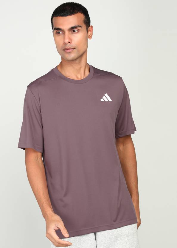 ADIDAS Men Solid Round Neck Polyester Purple T-Shirt
