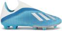 X isn't just a cleat. It's a recognition that speed should prise open defences, not dart down blind alleys. If you can't lead the charge with your lightning pace, jog on. But if you're ready to push past your limits, keep reading. These football boots have a lightweight mesh upper for match-long comfort, true touch and lightning pace. Their laceless design leaves a clean striking area on the forefoot. A low-cut collar and foot-hugging fit combine to keep you stable during explosive moves.