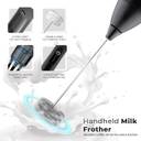 Adiguru 50 W Black Hand Blender (Rechargeable Milk Frother for Coffee - 3-Speed Electric Coffee Frother)