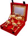 Adiidev Silver Gold Plated Ice Cream Set With Box Brass Decorative Platter (Multicolor, Pack of 9)