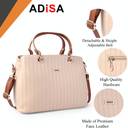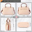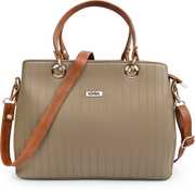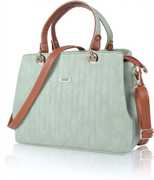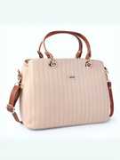Beautiful and classy handbag made in synthetic leather, styled elegantly with textured stripes on the front. The handbag has 3 compartments and a zipper pocket inside. There is an easy access pocket at the back. The bag also has a separate sling belt which is height adjustable. It is suitable for all occasions whether you wish to carry it formally for parties, for work or office, or for everyday use. Images are provided from all angles for you to have an all-round look.