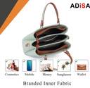 Beautiful and classy handbag made in synthetic leather, styled elegantly with textured stripes on the front. The handbag has 3 compartments and a zipper pocket inside. There is an easy access pocket at the back. The bag also has a separate sling belt which is height adjustable. It is suitable for all occasions whether you wish to carry it formally for parties, for work or office, or for everyday use. Images are provided from all angles for you to have an all-round look.