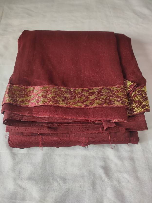 Solid/Plain Daily Wear Silk Blend Saree (Maroon)