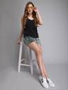 Look stylish for sunny adventures in this polyester fabric short. Features elastic ribbed waistband with drawstring and two pockets.