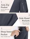 1 zipper sleeve pocket, 2 slant hand pockets, 1 inner pocket