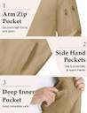 1 zipper sleeve pocket, 2 slant hand pockets, 1 inner pocket