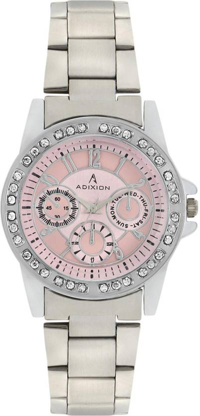 Inject a hint of elegance and style in your personality by wearing this pink and silver hued casual wrist watch for women that is brought to you by Adixion. Strap of this watch is made out of a superior quality stainless steel material, this wrist watch is long lasting and will retain the quality for the years to come. Plus, this wrist watch is crafted well with a round dial which comes with an analog display.