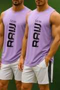 Polyester Set of 02 White Graphic Printed Sando