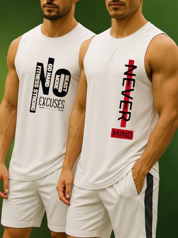 Polyester Set of 02 White Graphic Printed Sando