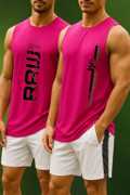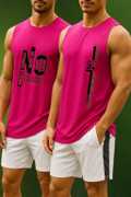 Adixus Polyester Set of 02 Rani-Pink Graphic Printed Sando