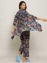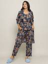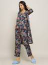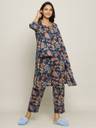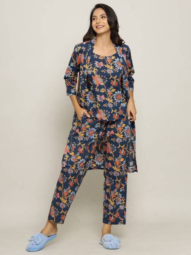 Women Night Suit Set Blue Floral Print